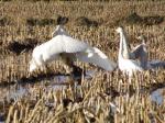 | Łabędzie krzykliwe na ściernisku. Dość m... | ||||